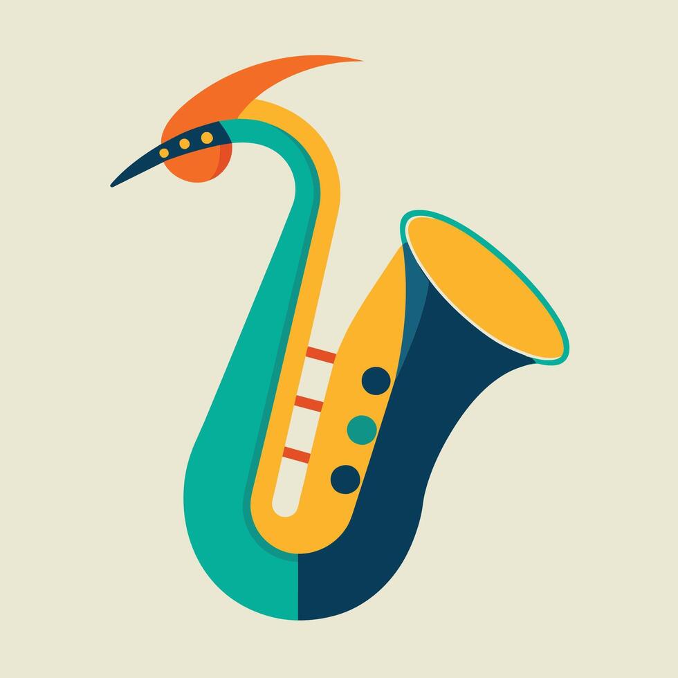 A saxophone with an elongated neck, creating a unique visual representation of its sound, Visualize the sound of a saxophone in a geometric form, minimalist simple modern logo design Free Vector