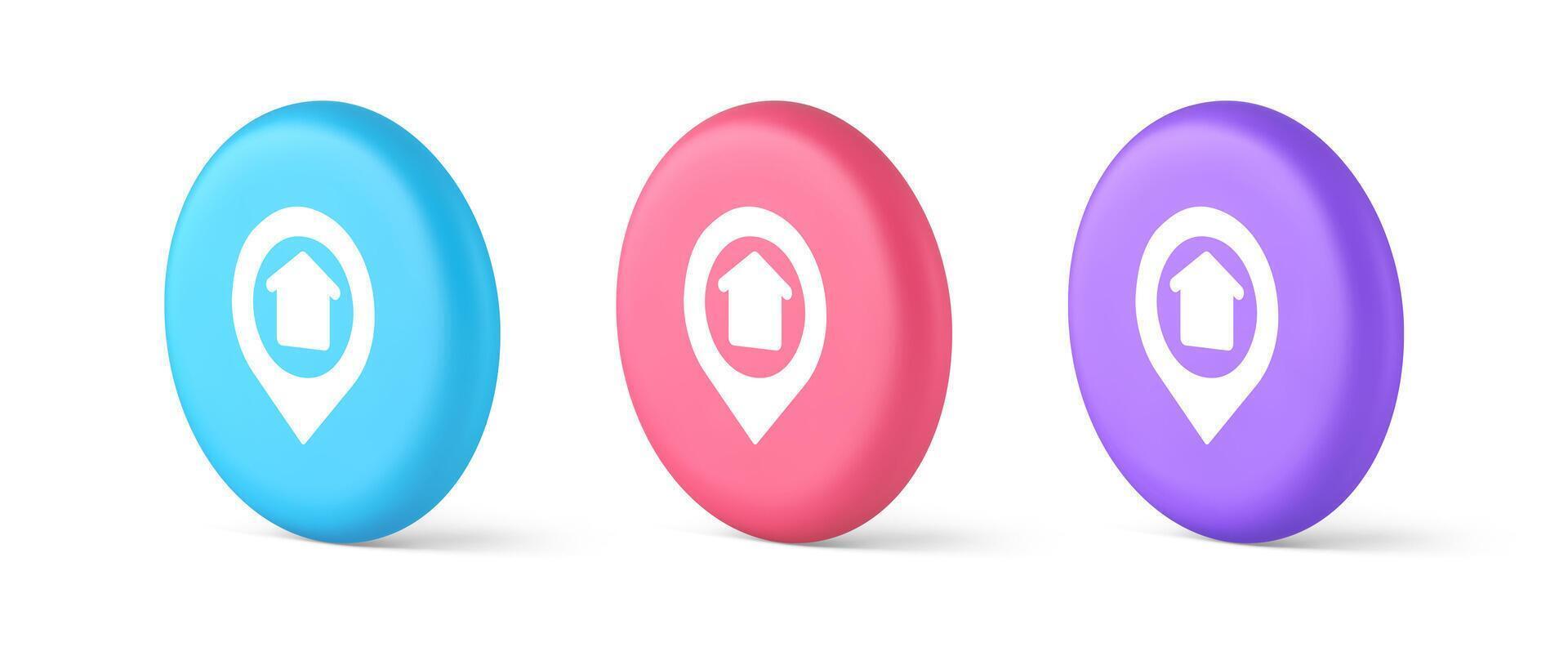 Urban building location find button house map pin web application 3d realistic isometric circle icon Pro Vector