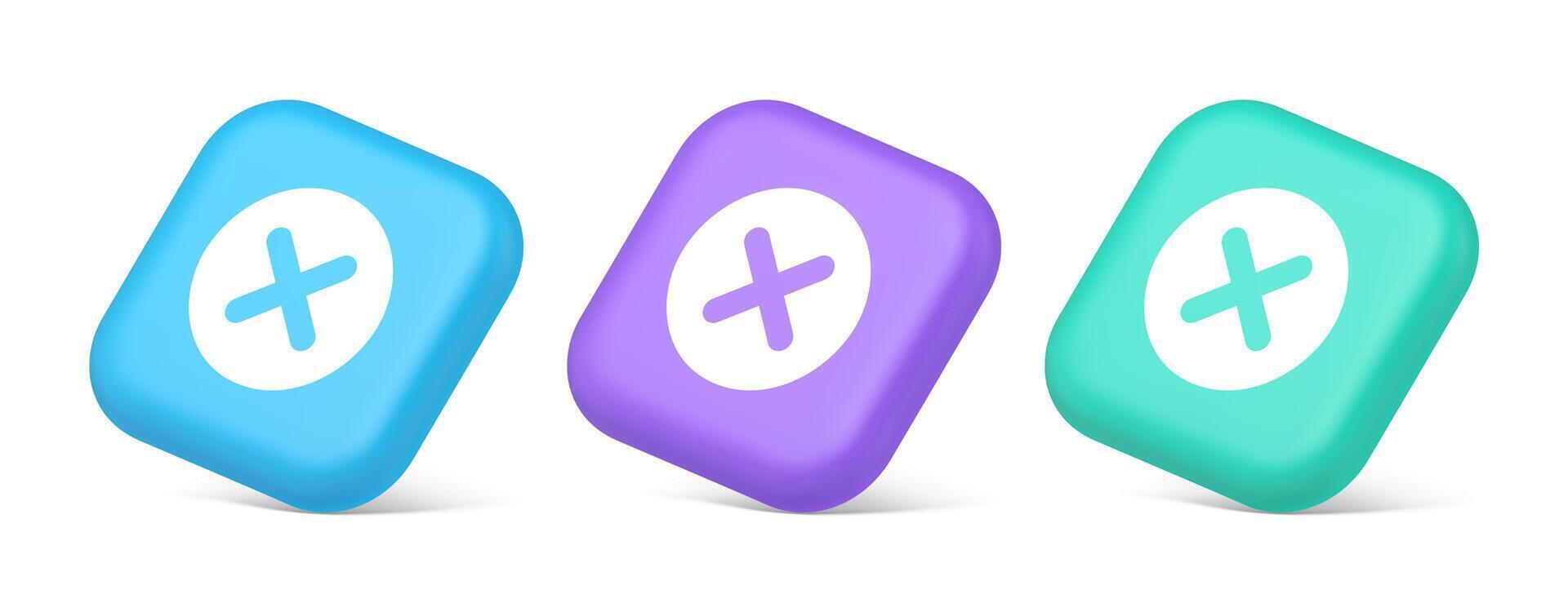 Cross button cancel reject decline negative forbidden fail 3d realistic isometric icon Pro Vector