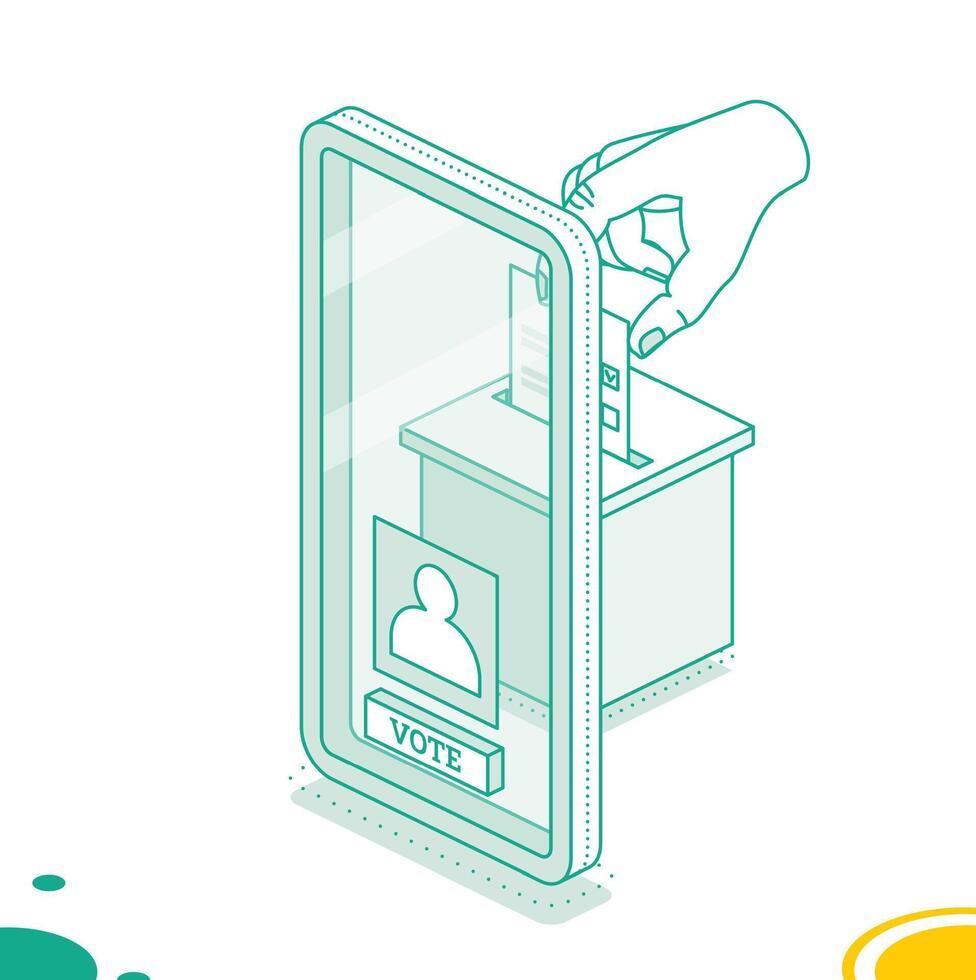 Isometric online voting and election concept using the smartphone. People vote online using mobile app to choose their candidate. Pro Vector