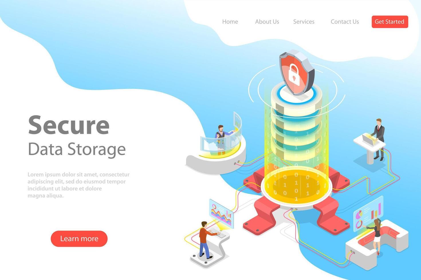 Flat isometric landing page template of secure online storage. Pro Vector