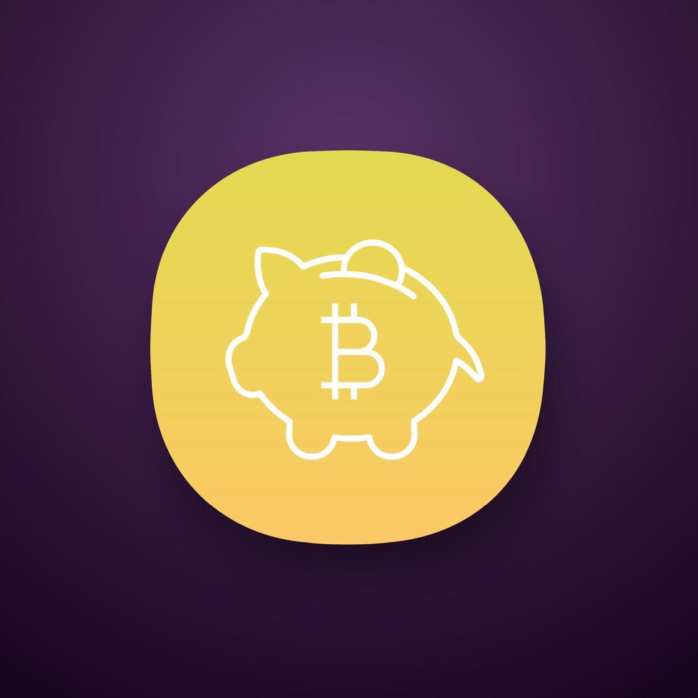 Bitcoin deposit app icon. Penny piggy bank with bitcoin. Cryptocurrency mining. UI UX user interface. Web or mobile application. Saving digital money. Vector isolated illustration Pro Vector