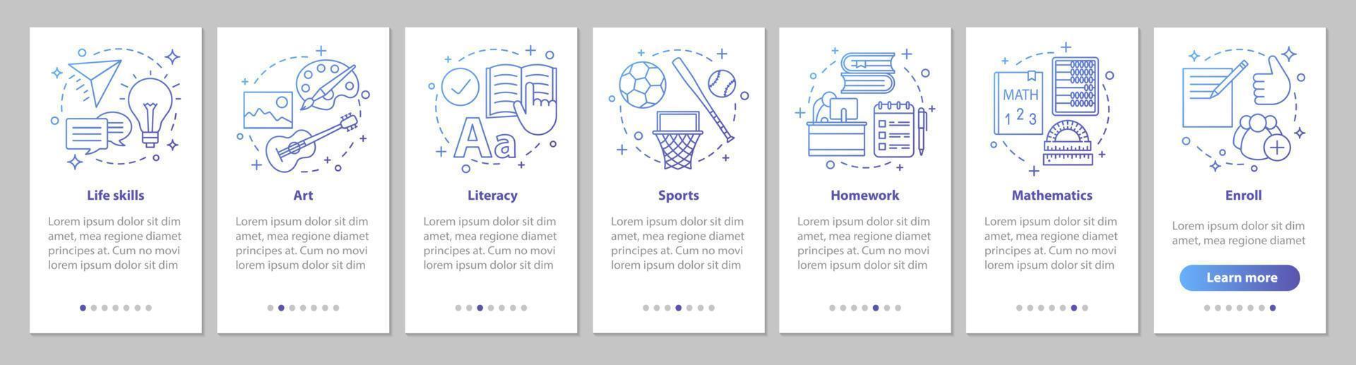 After school program onboarding mobile app page screen with linear concepts. School subjects steps graphic instructions. Afterschool education. UX, UI, GUI vector template with illustrations Pro Vector
