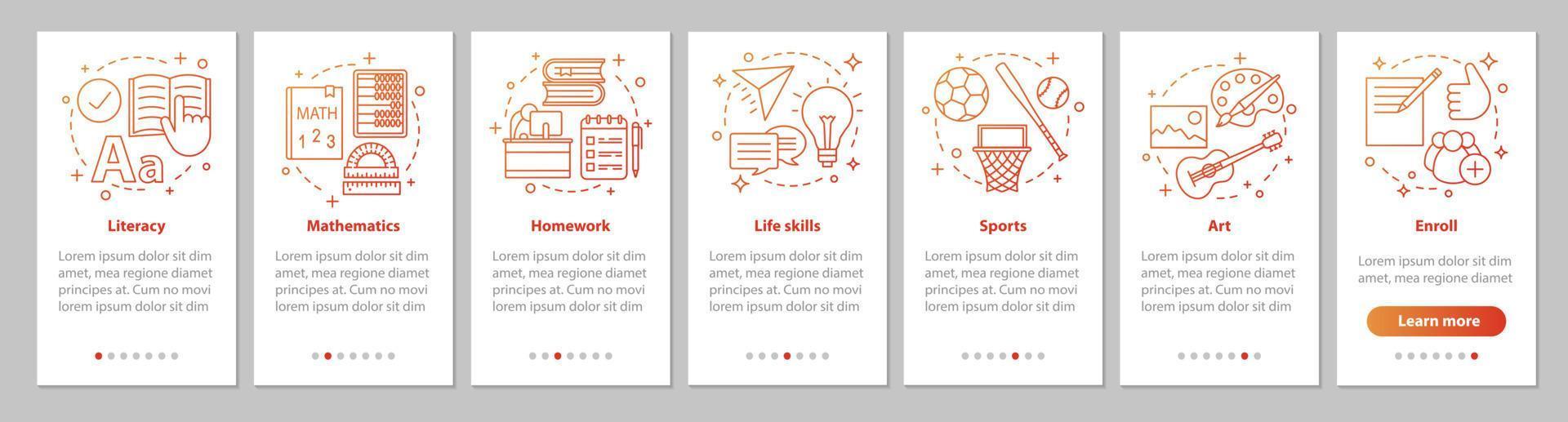 After school program onboarding mobile app page screen with linear concepts. School subjects steps graphic instructions. Afterschool education. UX, UI, GUI vector template with illustrations Pro Vector