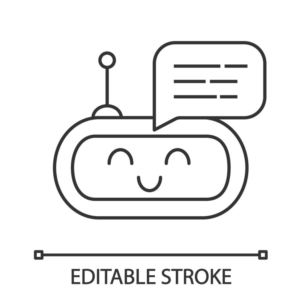 Chatbot message linear icon. Thin line illustration. Talkbot. Laughing chat bot. Modern robot. Virtual assistant. Conversational agent. Contour symbol. Vector isolated outline drawing. Editable stroke Pro Vector
