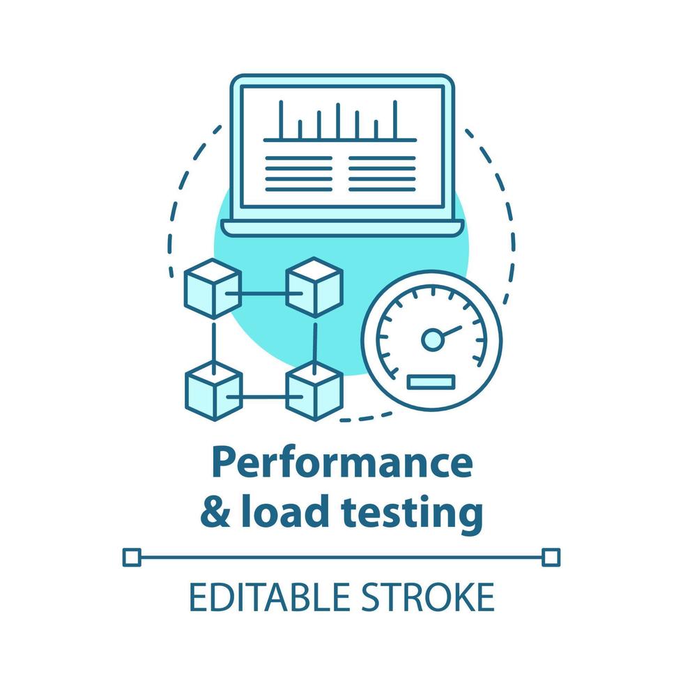 Performance and load testing concept icon. Research system speed, stability. Website speed optimization. Application check idea thin line illustration. Vector isolated outline drawing. Editable stroke Pro Vector