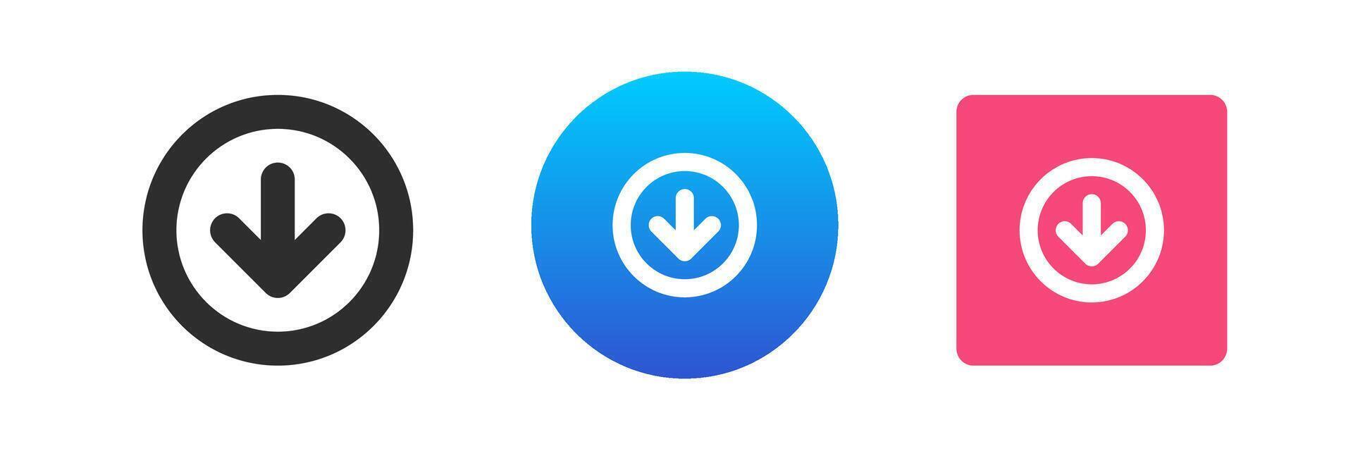 Arrow down pointer circle frame navigation direction cyberspace cursor icon set flat Pro Vector