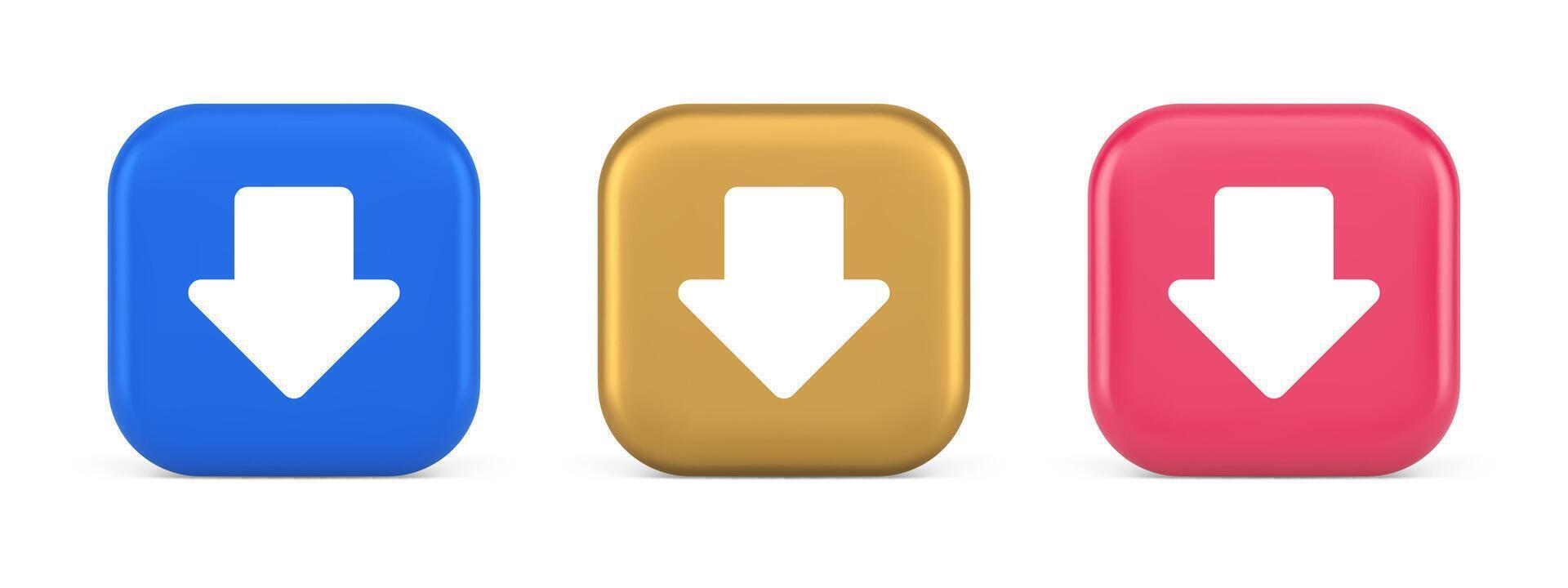 Arrow down button keyboard navigation pointer cyberspace downloading web app 3d icon Pro Vector