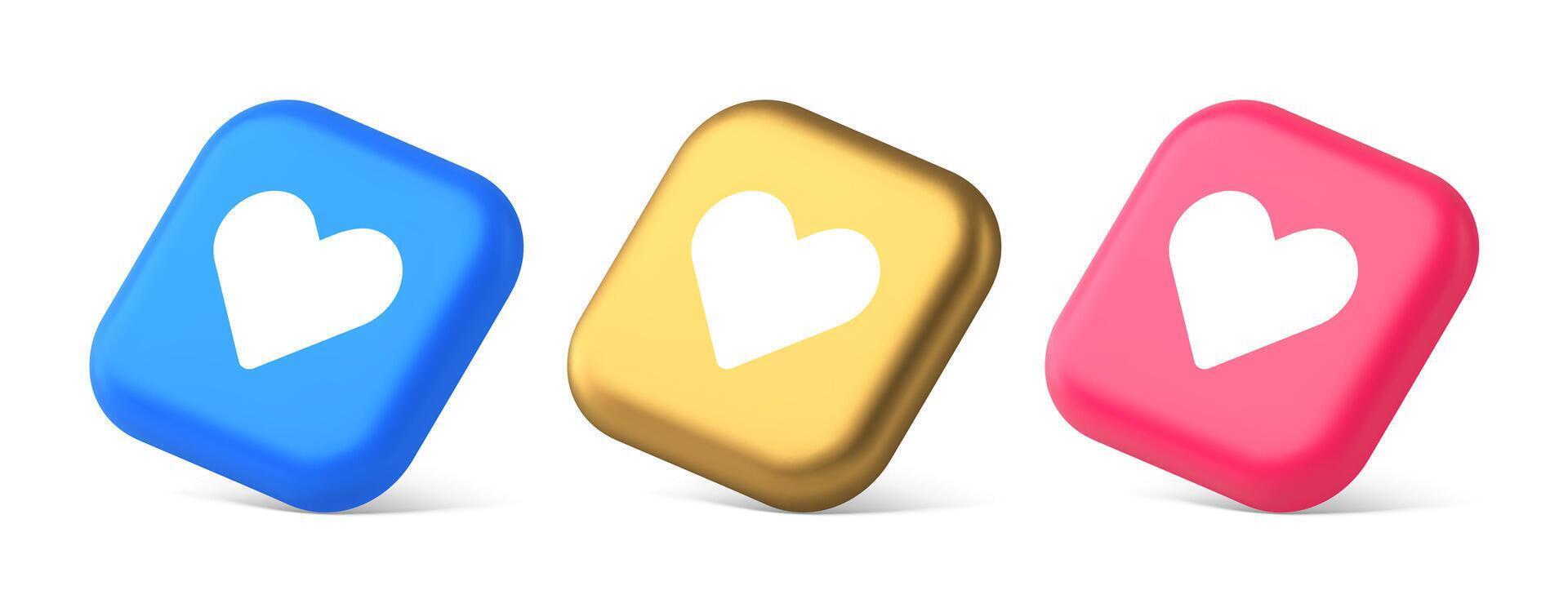 Dating application mobile interface button with heart social network communication 3d isometric icon Pro Vector