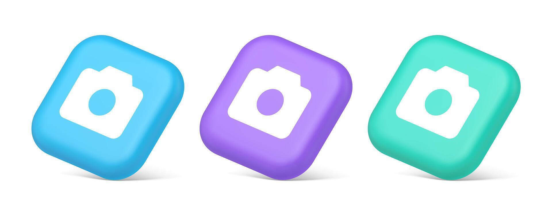 Camera multimedia application content creation digital button 3d realistic isometric icon Pro Vector