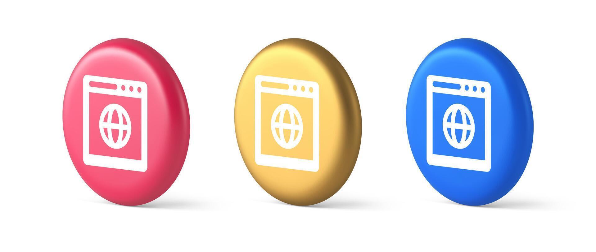 Browser website internet searching online connection button web page information 3d isometric circle icon Pro Vector