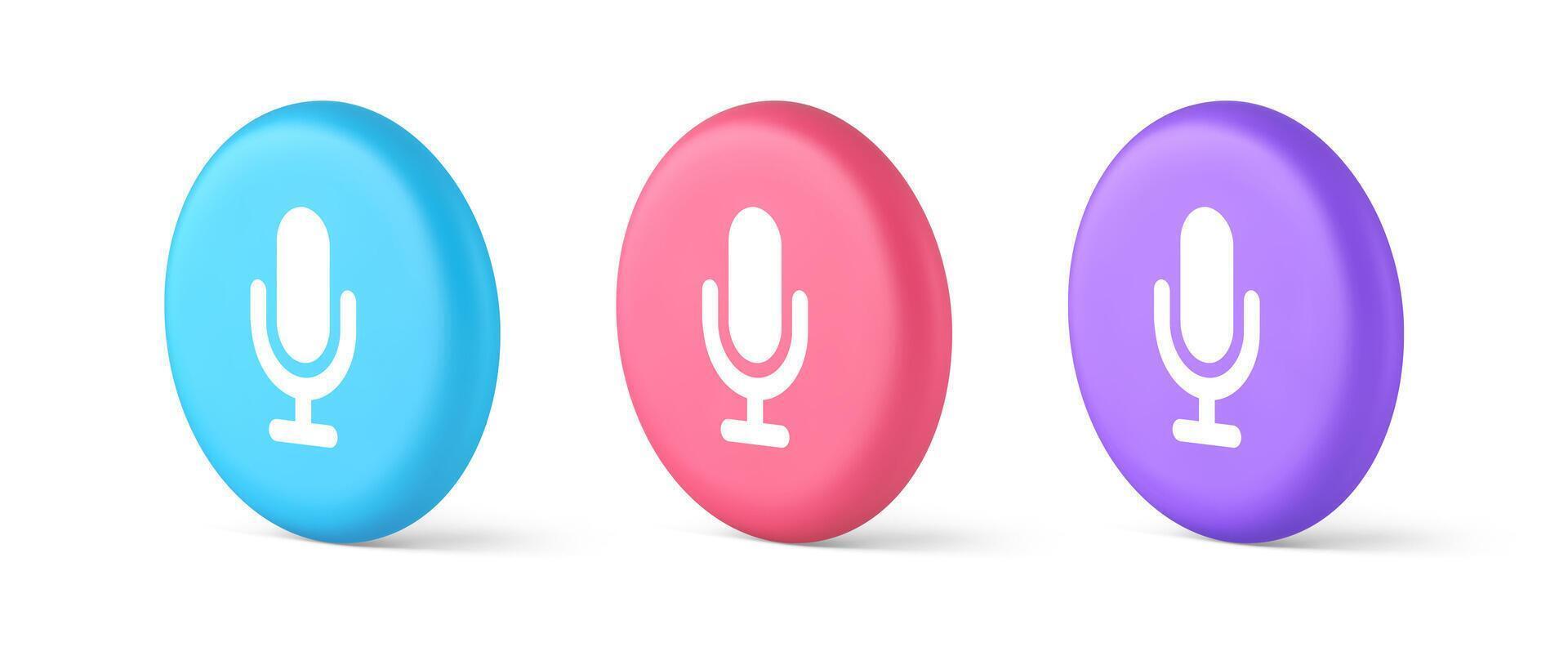 Microphone voice sound recording broadcasting button web app media communication 3d isometric circle icon Pro Vector