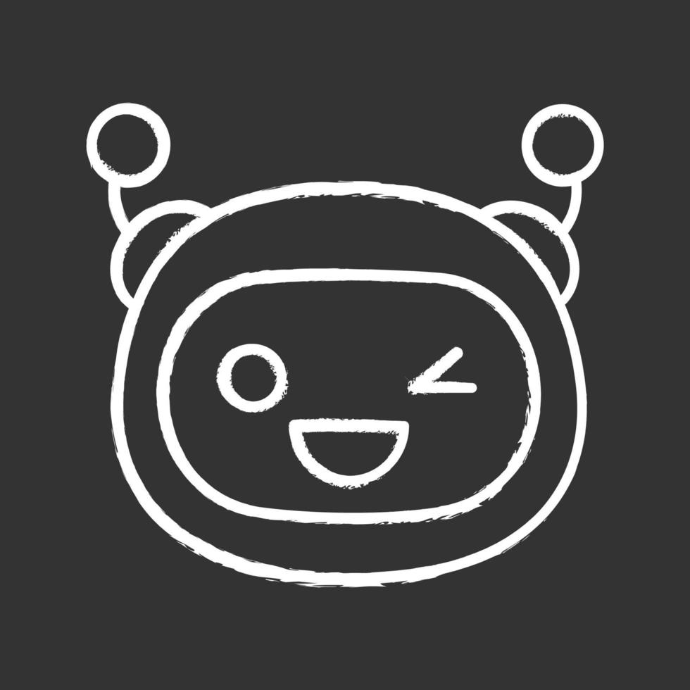 Winking robot emoji chalk icon. Happy and funny chatbot smiley. Chat bot emoticon. Artificial conversational entity. Artificial intelligence. Isolated vector chalkboard illustration Pro Vector