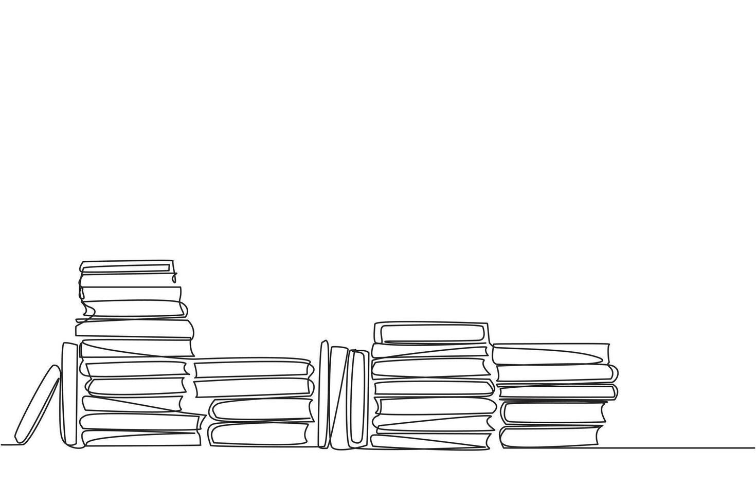 Continuous one line drawing lots of books piled up. Packaged after being brought from the book festival. Books to read while in space. Study. Fiction. Single line draw design illustration Pro Vector