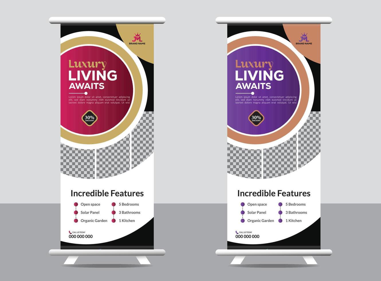 Roll-up banner design template, vertical, abstract background design Pro Vector