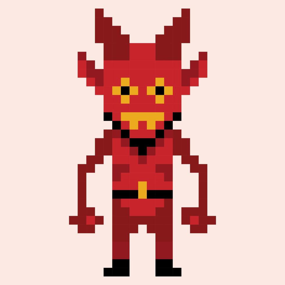 Pixel devil or demon icon. 8 bit evil character for games and applications Pro Vector