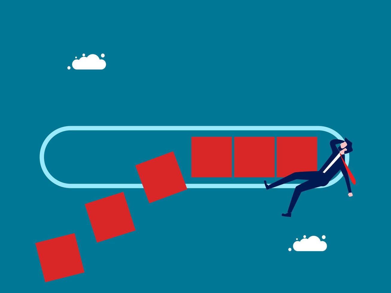Wasting time in vain. Lazy businessman sleeping on bar loading Pro Vector