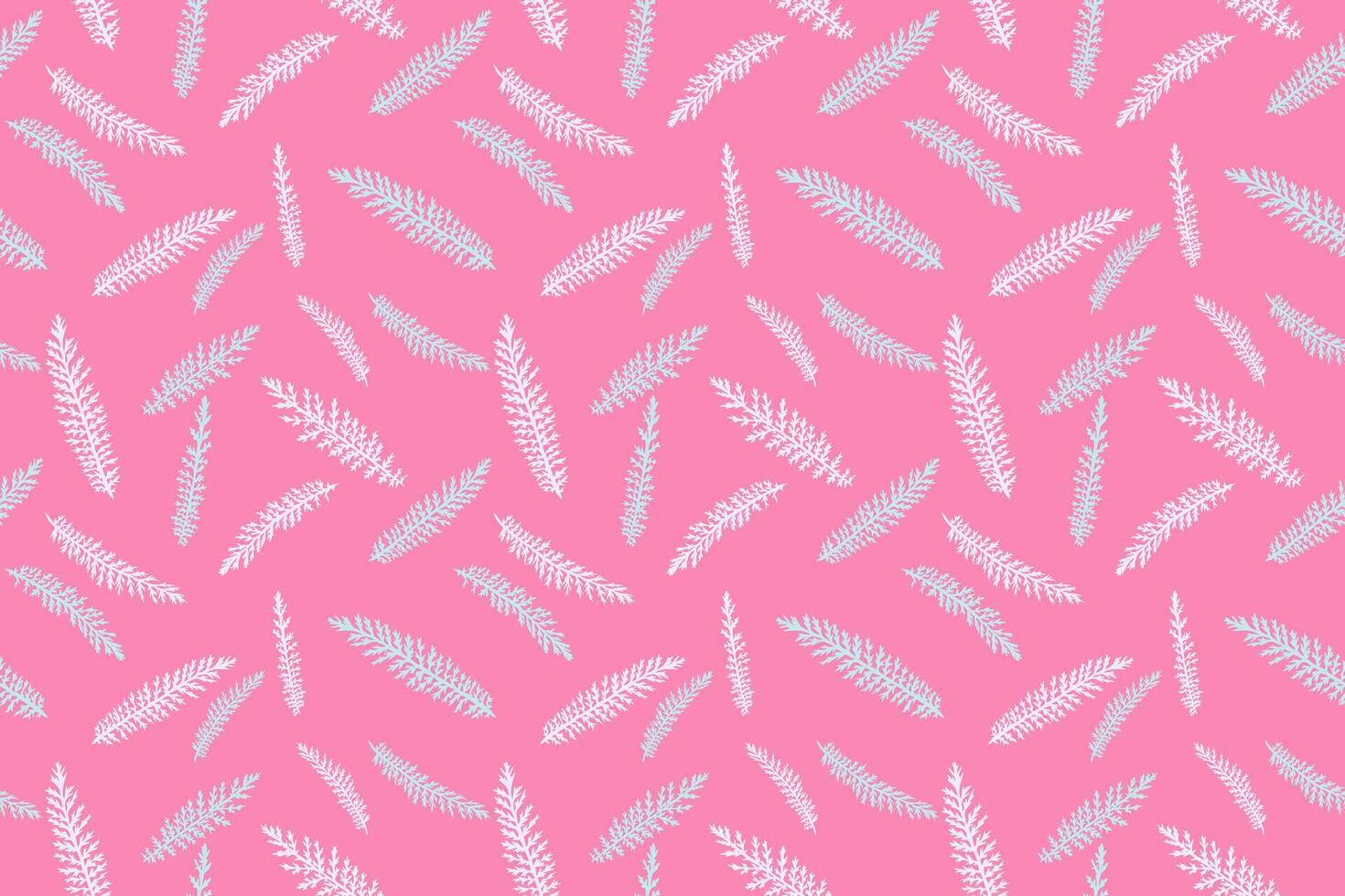 Abstract simple pink seamless pattern with tiny branches leaves fir. hand drawn sketch. Minimalist botanical printing. Collage for printing, design, fabric patterned vector