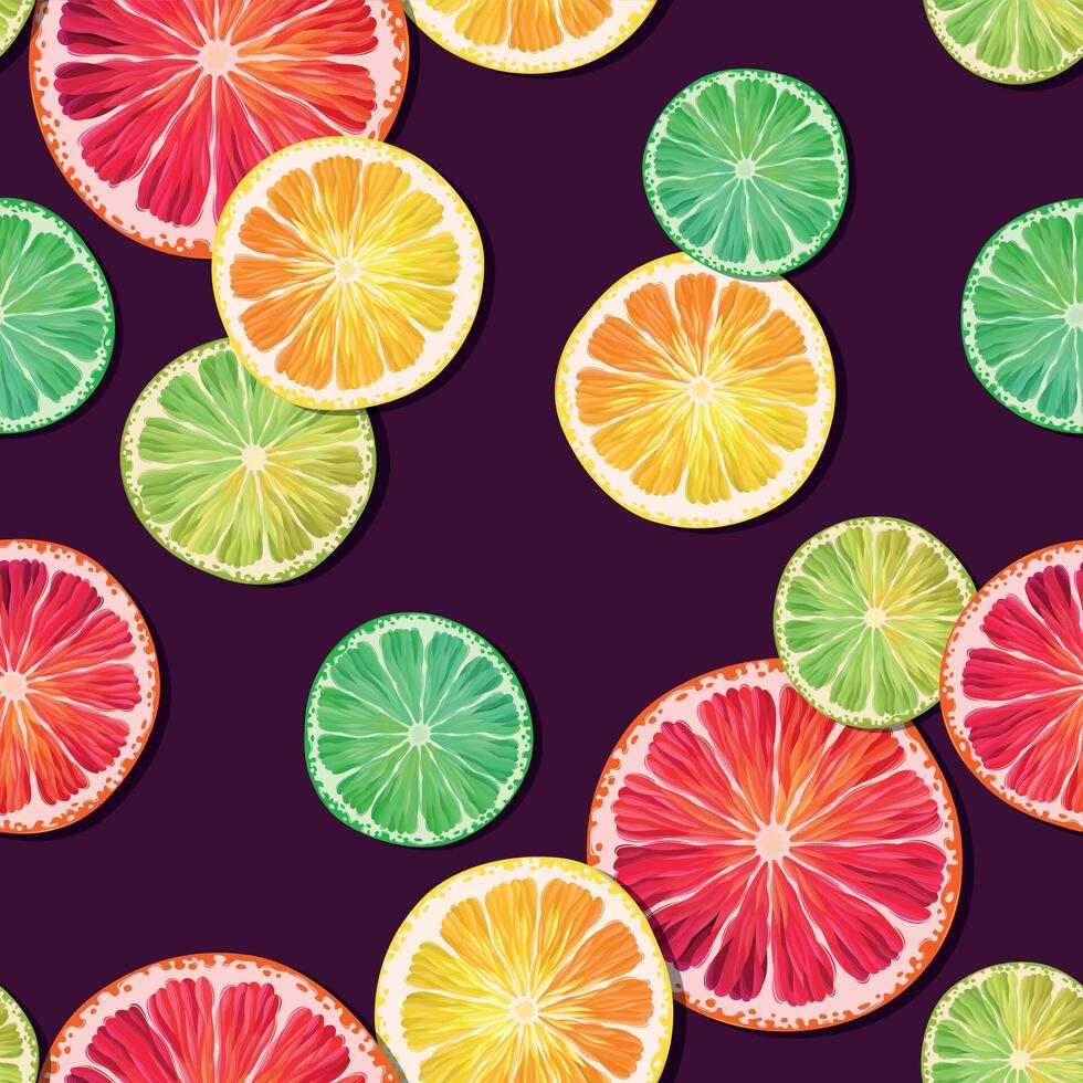 Seamless pattern with lemon, lime and grapefruit slices Pro Vector