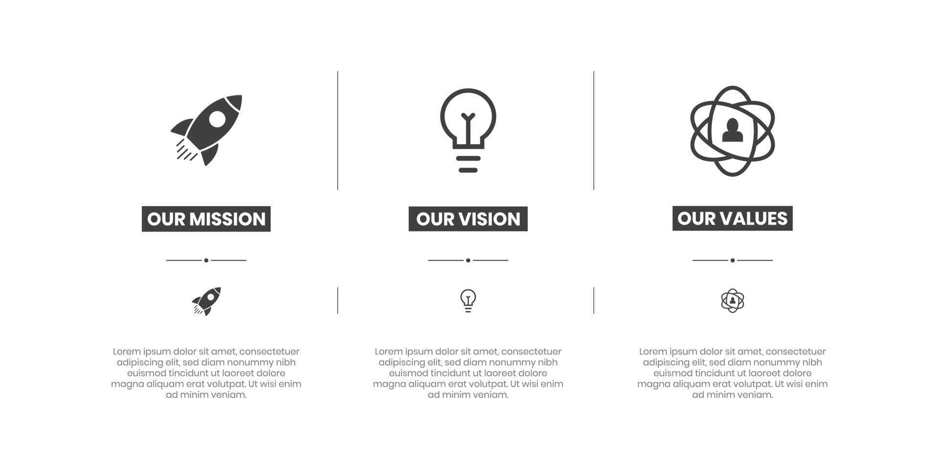 Mission, Vision and Values of company with text.Purpose business concept.Mission vision values icon design for multiple use. Pro Vector