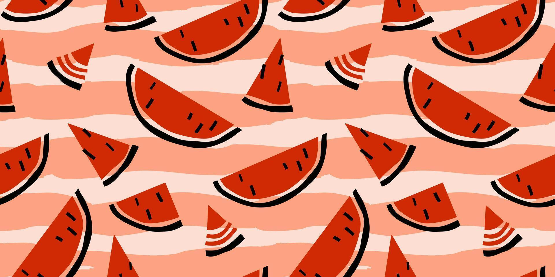 Seamless pattern with abstract watermelon slices on a background of lines. Fruity summer delicious print. Pro Vector