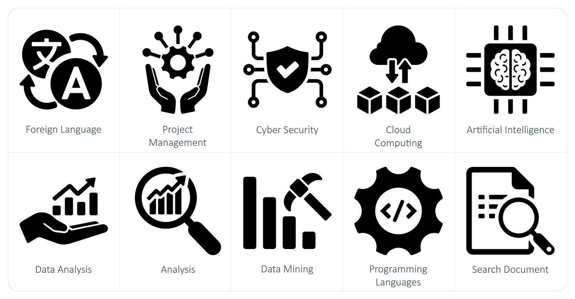 A set of 10 hard skills icons as foreign language, project management, cyber security Pro Vector