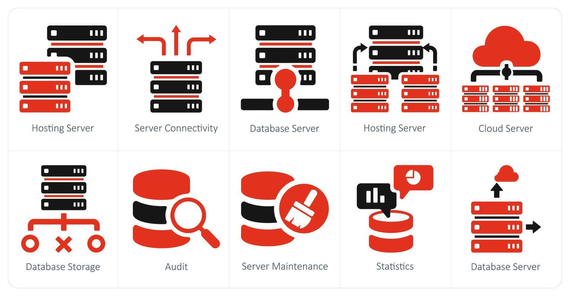 A set of 10 big data icons as hosting server, server connectivity, hosting server Pro Vector