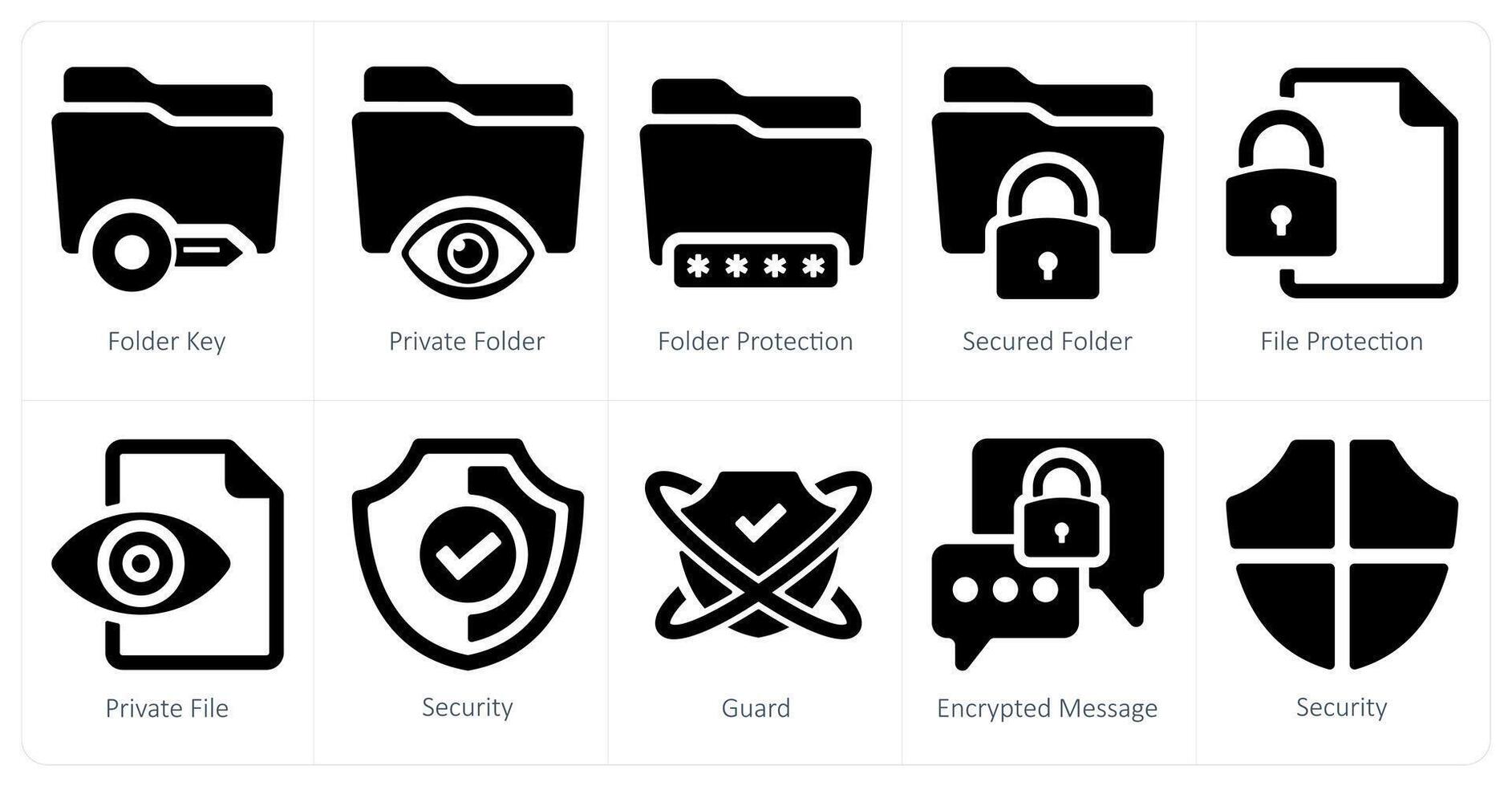 A set of 10 Security icons as folder key, private folder, folder Pro Vector