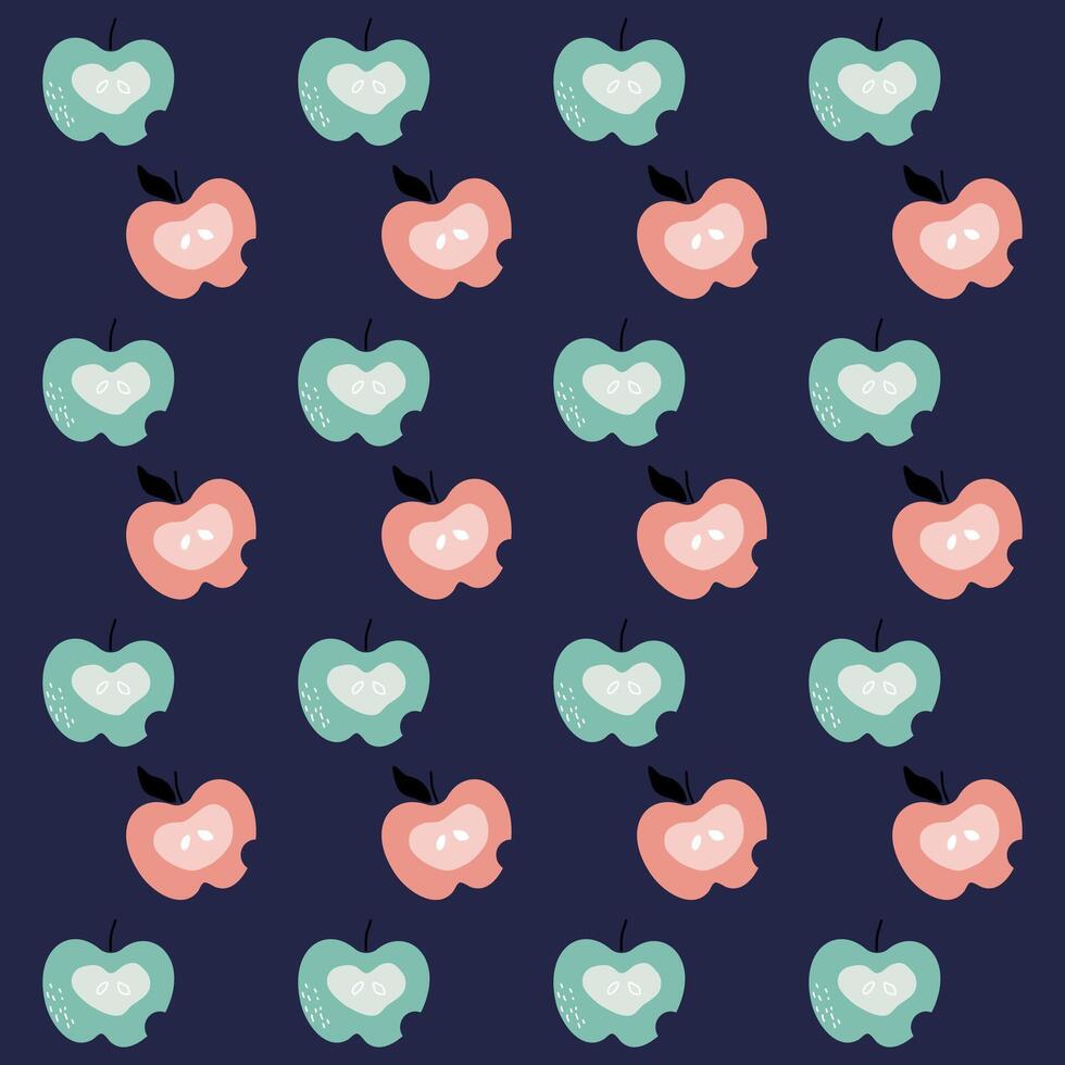 Hand drawn apple pattern. Apple fruit pattern on dark background. Fruit Background. Pattern for fabric vector