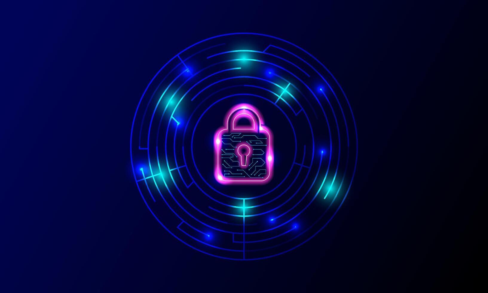Cyber security concept. Locks on technology and dark background. Hacker protection and viruses on the Internet. Pro Vector