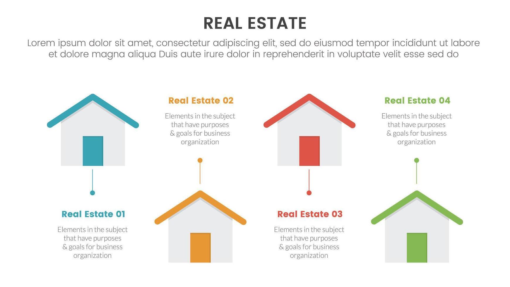 real estate property infographic template banner with small house up and down with 4 point list information for slide presentation vector