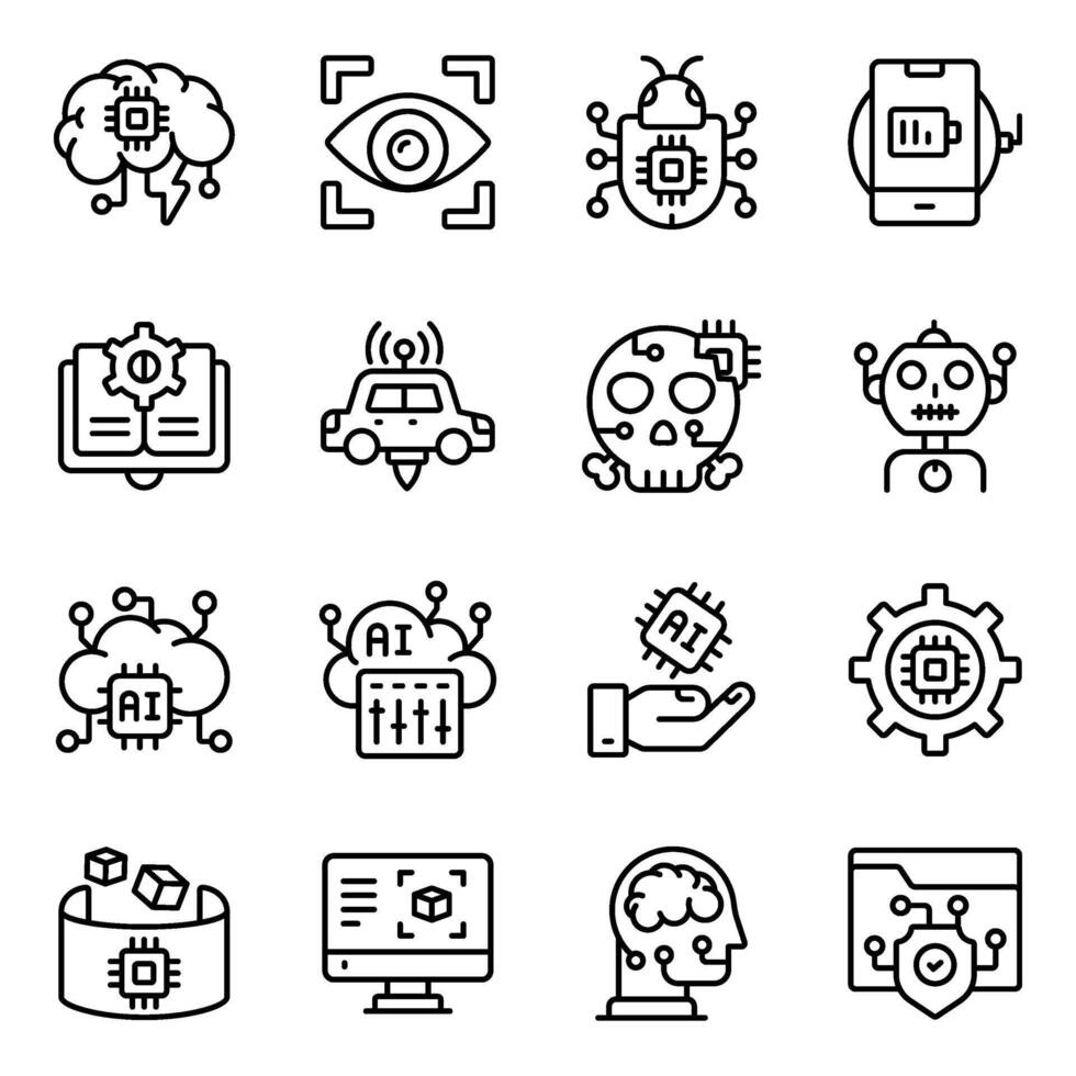 Set of Artificial Intelligence Linear Icons Pro Vector