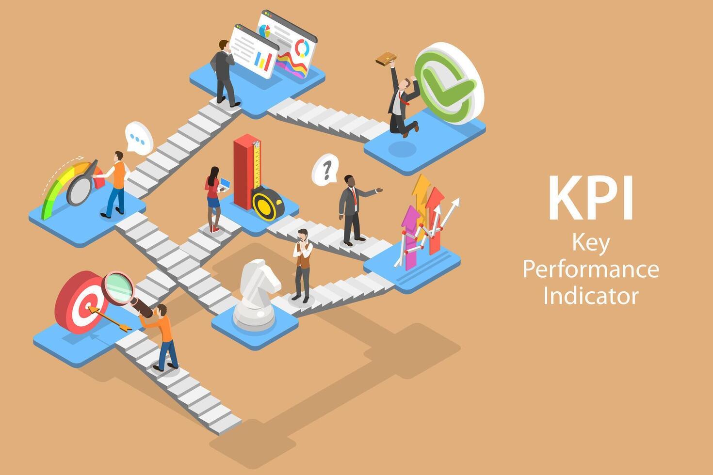 3D Isometric Flat Concept of Key Performance Indicator. Pro Vector