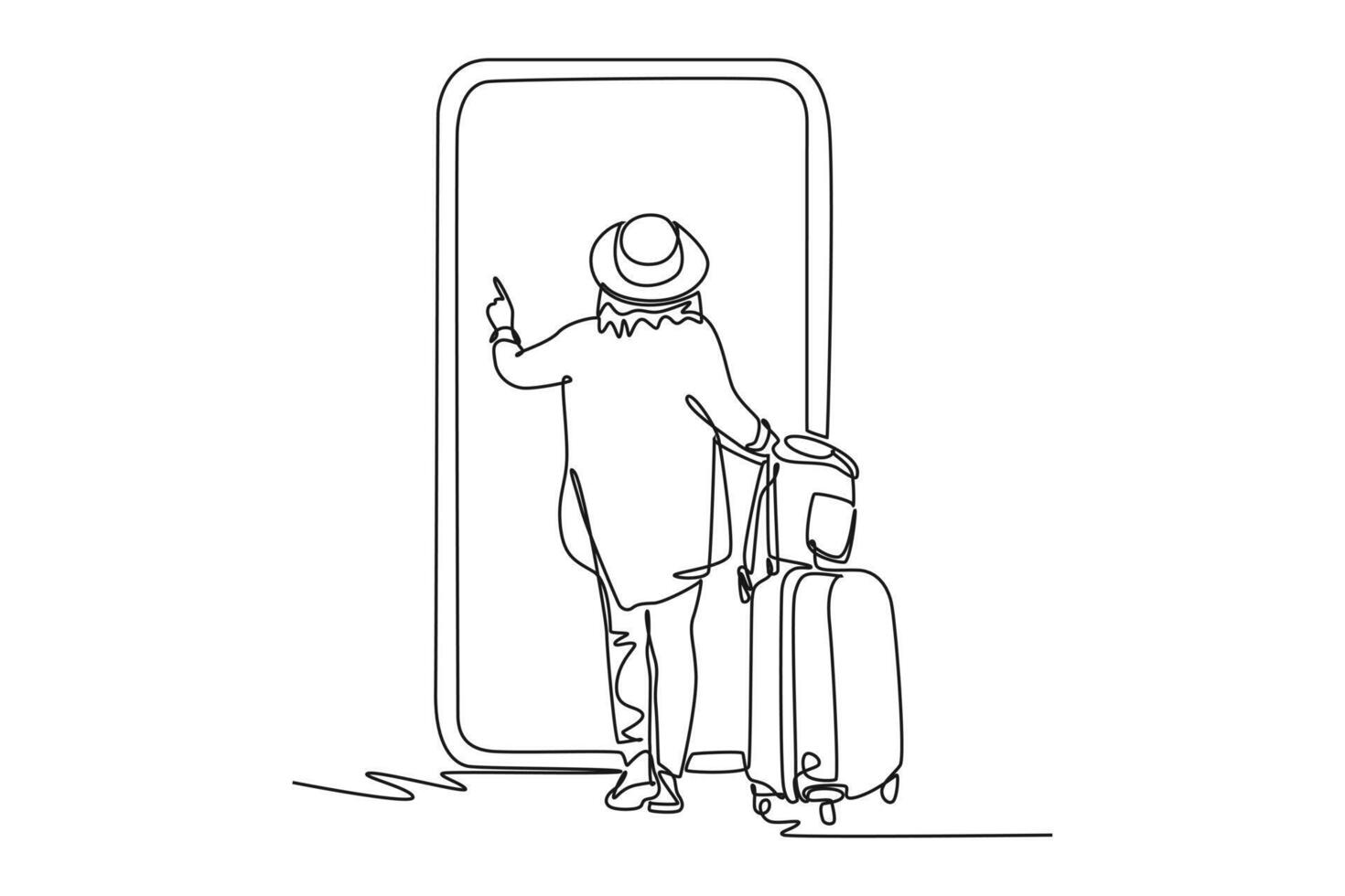One continuous line drawing of Fingers touching, tapping, scrolling smartphone screens concept. Doodle illustration in simple linear style Pro Vector