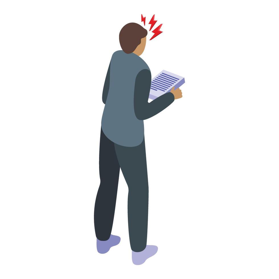 Workaholic worker with papers icon isometric . Schedule use Pro Vector