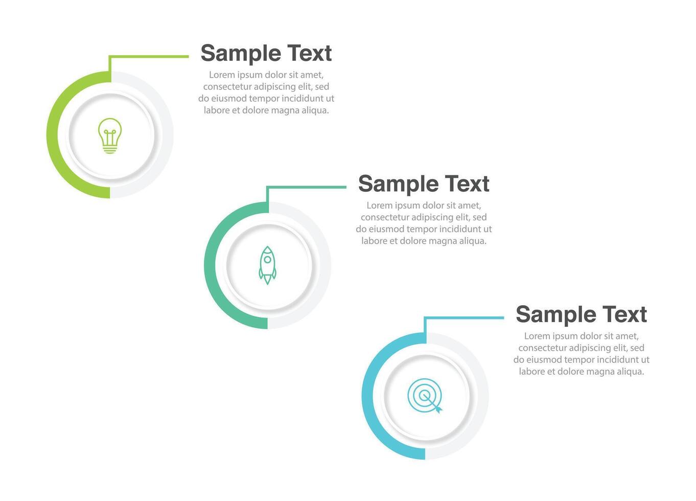 template circle infographics. Business concept with 3 options and parts. Three steps for content, flowchart, timeline, levels Pro Vector