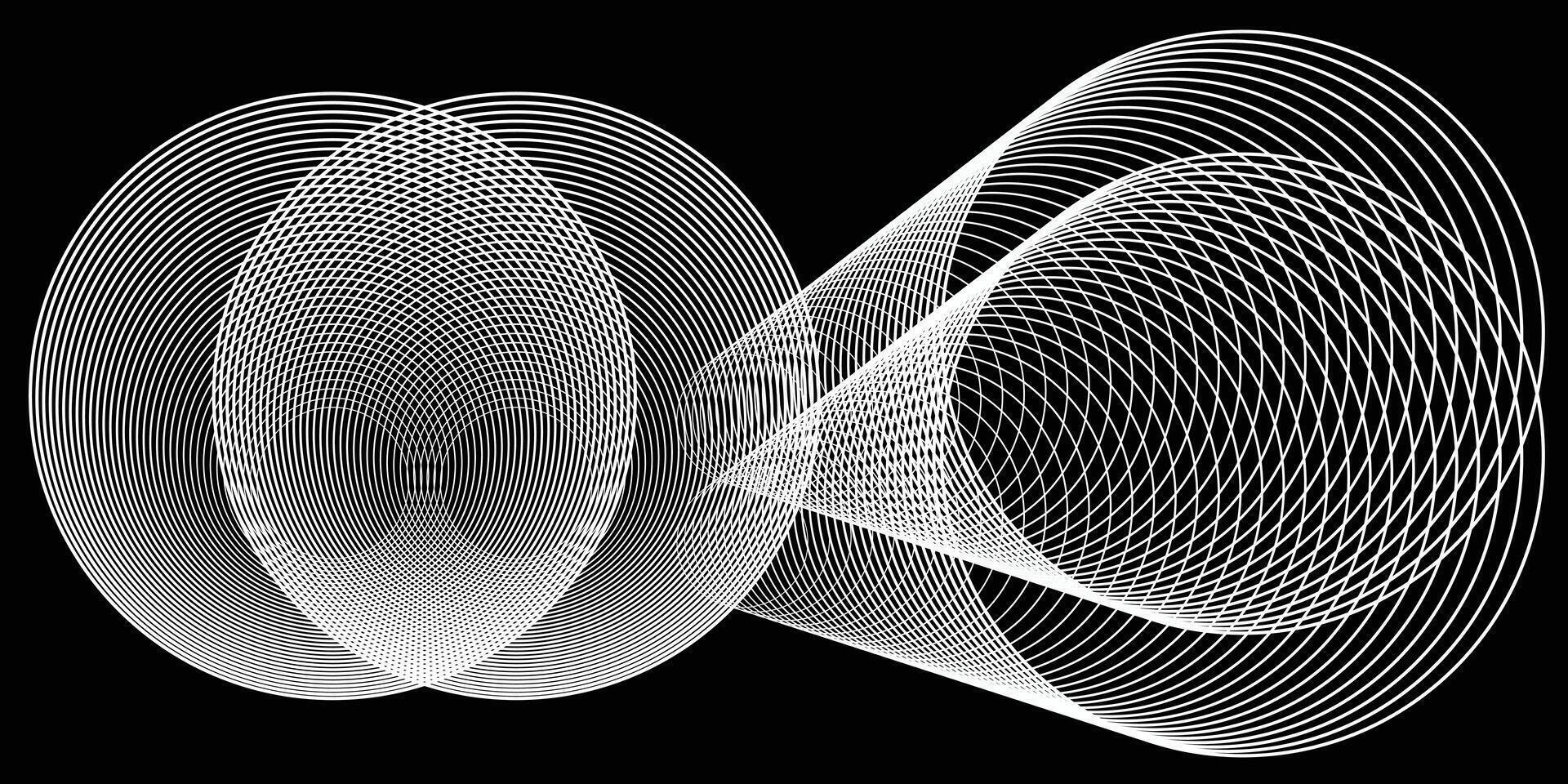 Thin line circle blend, overlap white line circle isolated on dark background, design for backdrop, brochure, landing page, leaflet. vector