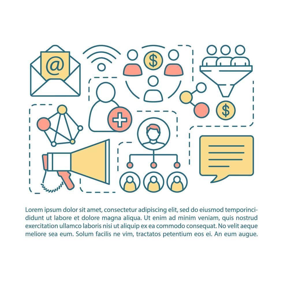 Referral viral marketing article page vector template. Brochure, magazine, booklet design element with linear icons and text boxes. Print design. Concept illustrations with text space Pro Vector