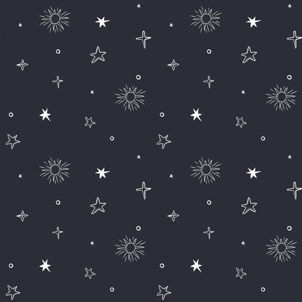 Monochrome seamless pattern with stars and sun. Space background. Space elements. Pro Vector