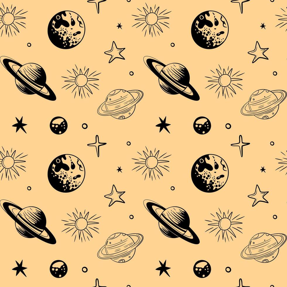 Monochrome seamless pattern with planets and stars. Space background. Hand drawn space elements. Pro Vector