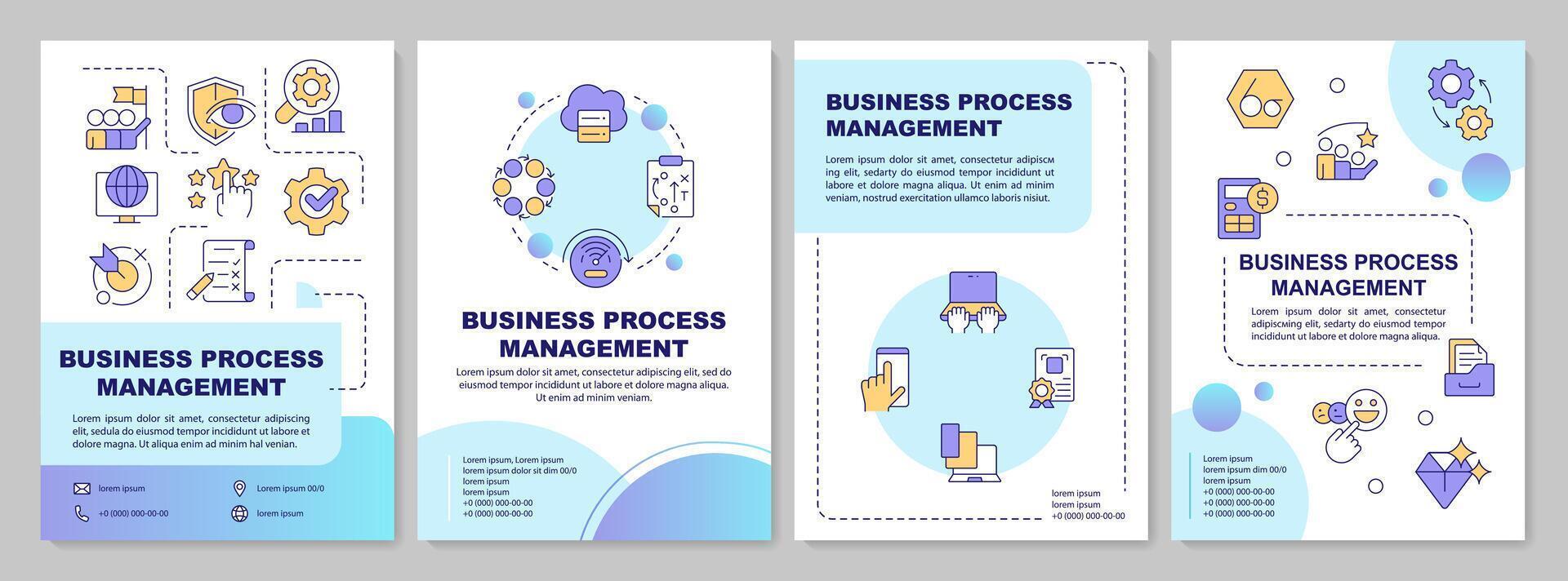 BPM management blue gradient brochure template. Workflow automation. Leaflet design with linear icons. Editable 4 layouts for presentation, annual reports. Arial, Myriad Pro-Regular Pro Vector
