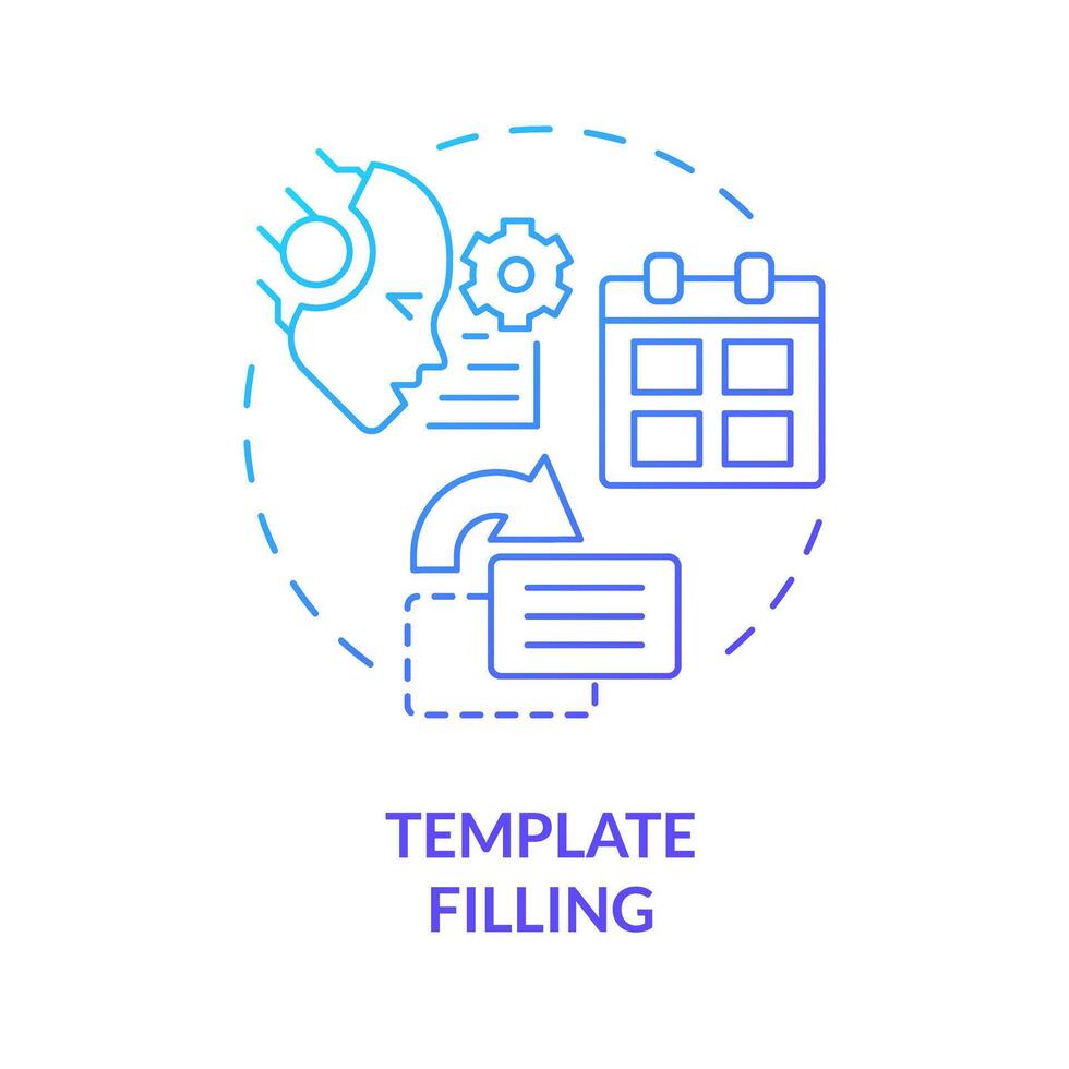 Template filling blue gradient concept icon. Prompt engineering technique. Interact with AI models. Round shape line illustration. Abstract idea. Graphic design. Easy to use in article Pro Vector