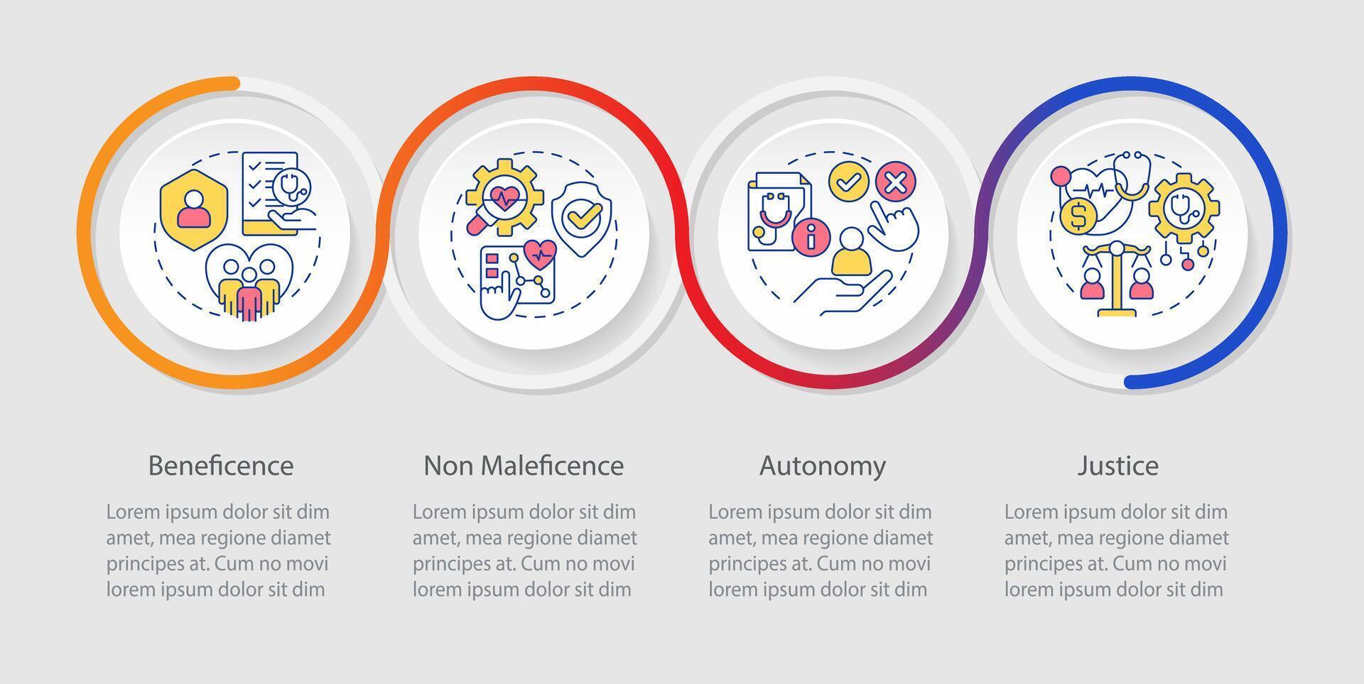 Principles of bioethics loop infographic template. Informed consent. Data visualization with 4 steps. Editable timeline info chart. Workflow layout with line icons Pro Vector