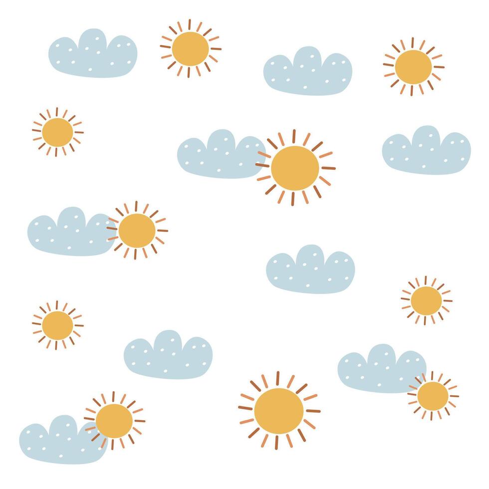Sun and cloud pattern for summer pattern on white background vector