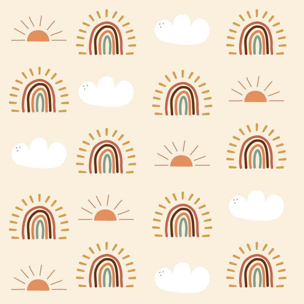 Cloud, ach, sun pattern on yellow background, boho pattern vector