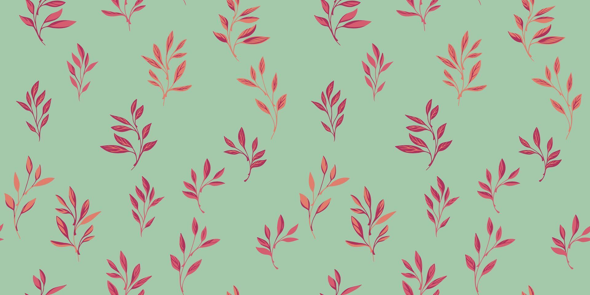 Abstract tiny isolate leaves branches green seamless pattern. hand drawn. Minimalist leaf stems printing. Template for designs, collage, patterned Free Vector
