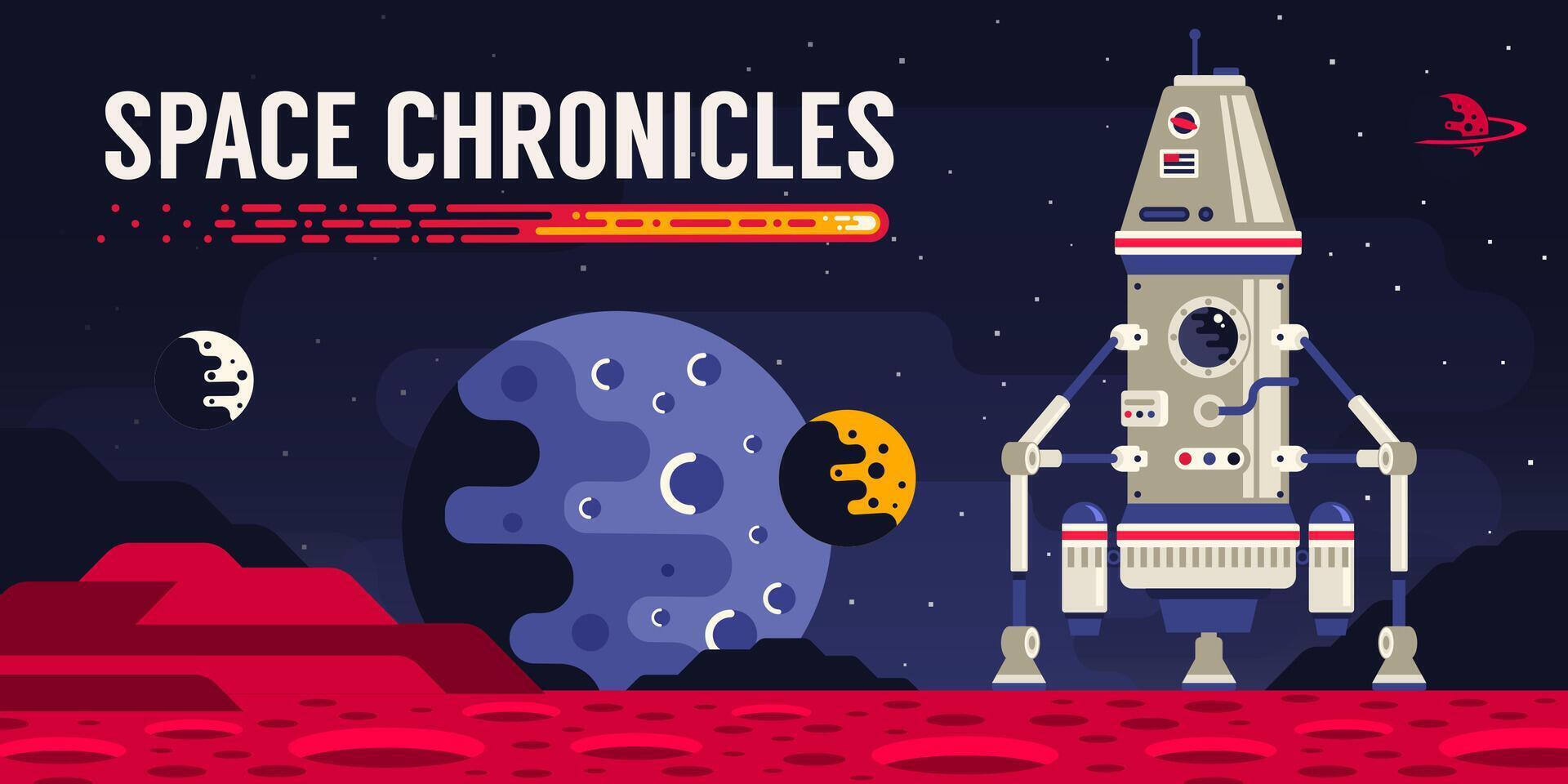 Planet surface and spacecraft landing module Pro Vector