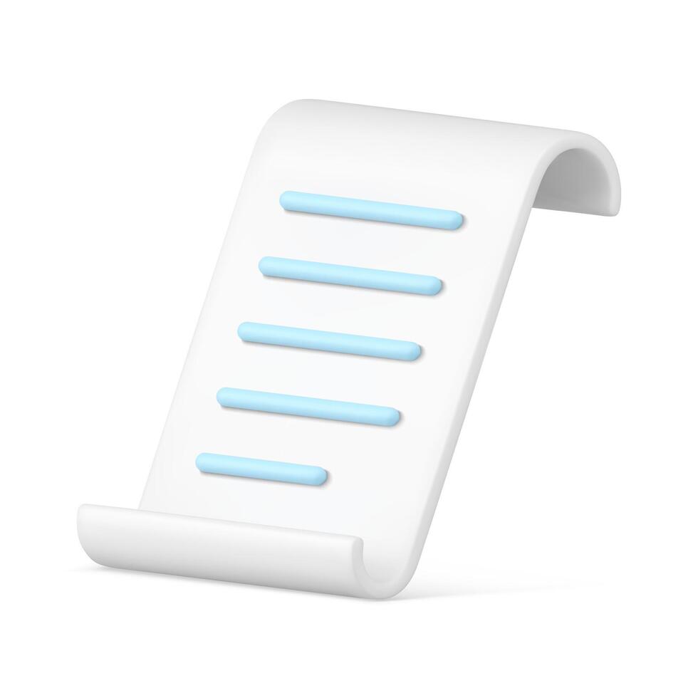 Curved white diagonal placed paper page text information business document 3d icon realistic Pro Vector