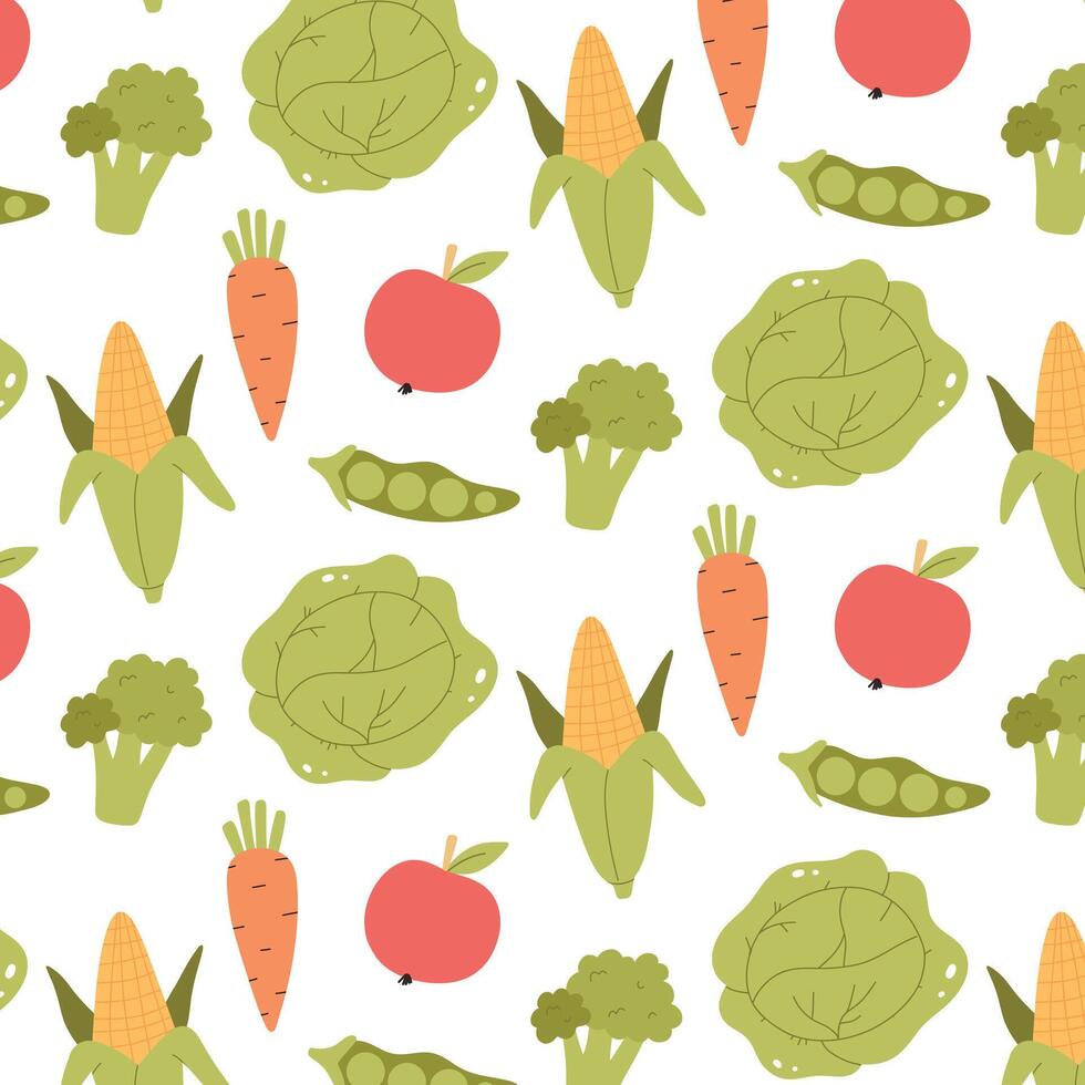 Seamless pattern with vegetables. Pattern with corn and cabbage. illustration. Pro Vector
