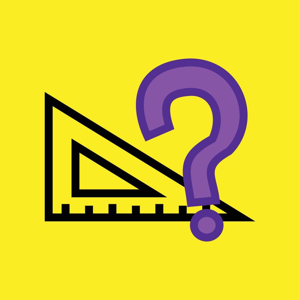 triangle ruler and question mark. Mathematical symbols, geometric object elements. Design illustration of a length measuring instrument. Educational design elements. Pro Vector